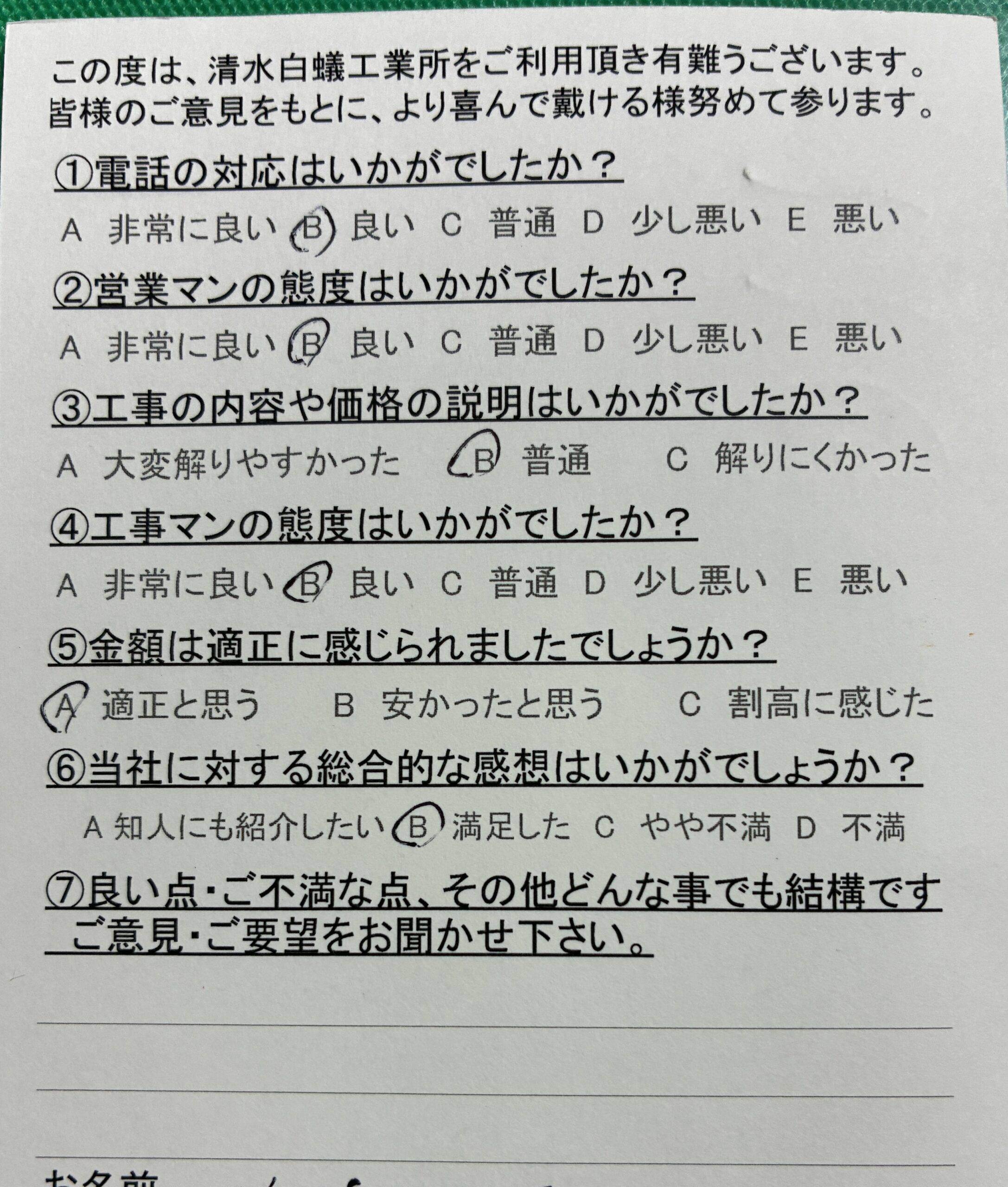 ④工事マンの態度はいかがでしたか?